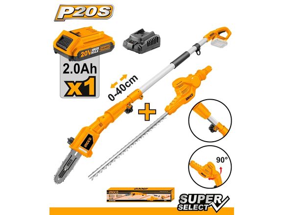 Кусторез телескопический + пила цепная "20V MAX" INGCO INDUSTRIAL 1АКБ*2Ач + ЗУ (1/4)