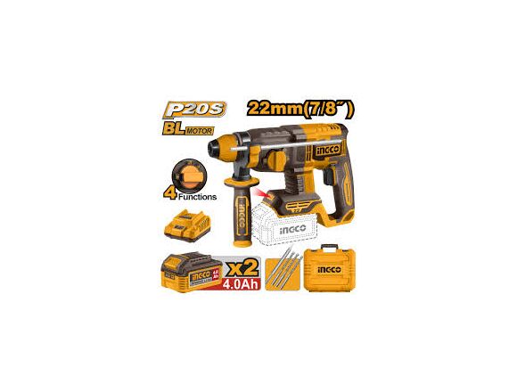 Перфоратор Б/Щ "20V MAX" INGCO INDUSTRIAL 2Дж 4 режима, 2АКБ*4Ач+ЗУ*4А, КЕЙС (1/4)