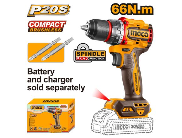 Шуруповерт Б/Щ "20V MAX" INGCO INDUSTRIAL 66Нм, БЗП 13мм МЕТАЛЛ, без АКБ/ЗУ (1/5)