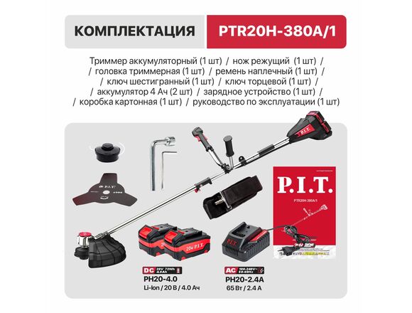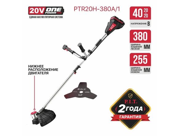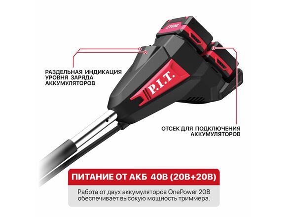 Триммер OnePower Б/Щ P.I.T. 40В (20В+20В) АКБ2*4Ач+ЗУ ВЕЛОРУЧКА нижний двигатель (1/1)