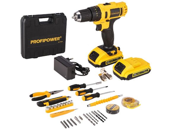 Шуруповерт аккумуляторный "ONE-DW" PROFIPOWER 18В 35Нм, 2АКБ*2Ач, З/У, КЕЙС c ИНСТРУМЕНТОМ (DW-18BT)