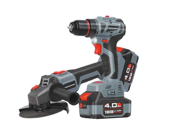 НАБОР Б/Щ 2в1 PROFIPOWER в КЕЙСЕ (УШМ E0080 и шуруповерт Т0056) (18В, АКБ2*4Ач + З/У) (1/5)