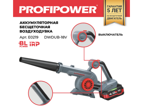 Воздуходувка Б/Щ "ONE-MK" PROFIPOWER 18В TURBO 1АКБ*4Ач +З/У удобная 2К ручка/вкл (1/5)