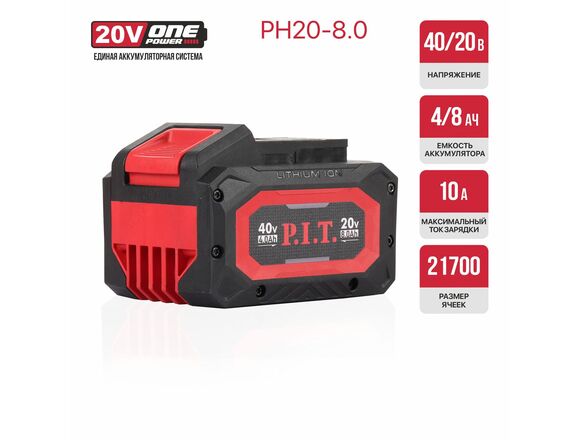 Аккумулятор OnePower P.I.T 20В, 8Ач, индикация заряда (1/20)