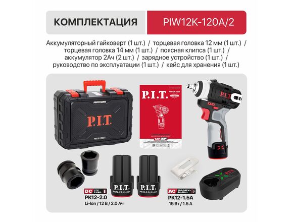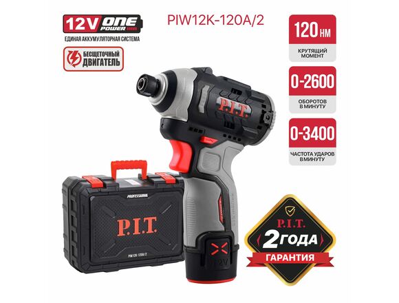 Гайковерт OnePower Б/Щ P.I.T. 12V, 120Нм, 2АКБ+3У, КЕЙС, 3400уд/мин, 0-1100/2600об/мин