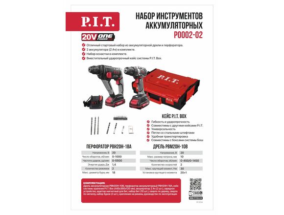 Набор ONE POWER P.I.T. 2 в 1 МОДУЛЬ КЕЙС (перфоратор PBH20H-18A + шуруповерт PBM20H-10B)