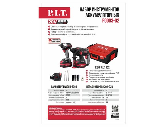Набор ONE POWER P.I.T. 2 в 1 МОДУЛЬ КЕЙС (перфоратор PBH20H-22B + гайковерт PIW20H-300B) (1/2)