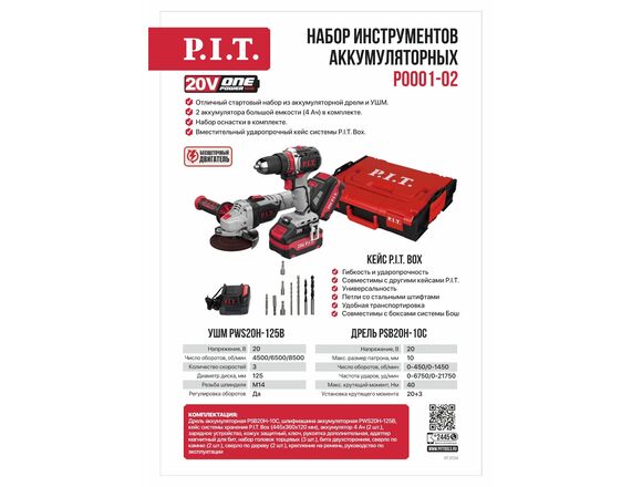 Набор ONE POWER P.I.T. 2 в 1 МОДУЛЬ КЕЙС (УШМ PWS20H-125B + шуруп PSB20H-10C)
