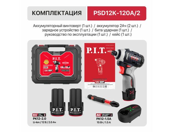 Винтоверт IMPACT Б/Щ OnePower P.I.T. 12В 120Нм,3ск,HEX 1/4",2АКБ+ЗУ+КЕЙС),1/5