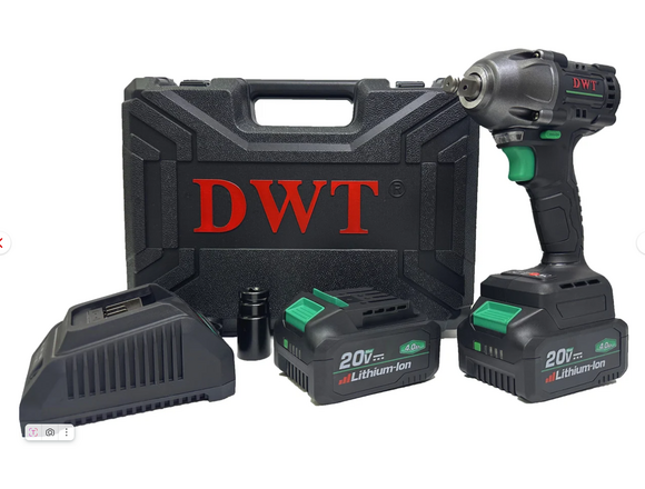Гайковерт Б/Щ DWT "20V" 350Нм, 1/2", 2АКБ*4Ач+ЗУ, LED, Кейс (1/3)