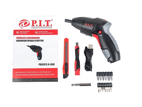 Аккумуляторная отвертка P.I.T. PD03P3.6-006 предназначена для вкручивания и выкручивания шурупов, винтов, саморезов.