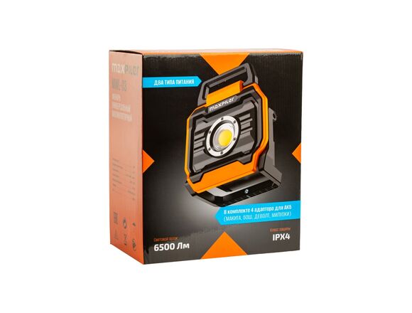 Фонарь универсальный аккум. MAXPILER (аккум+сеть 6500/1000Лм 2реж USB, креп.на ш, 4 АДАПТЕРА к АКБ
