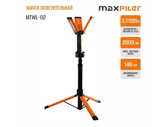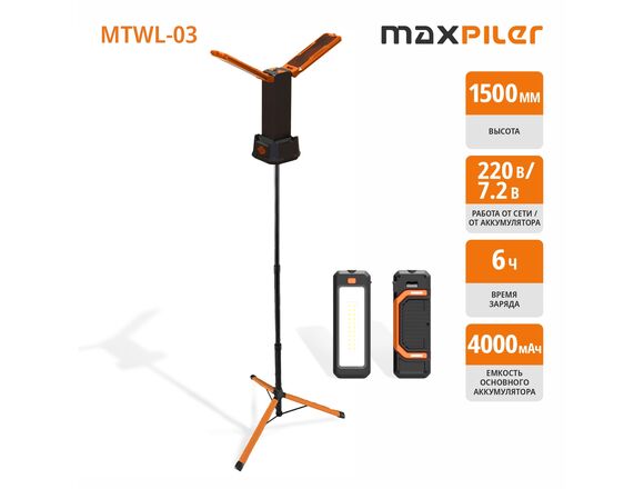 Мачта осветительная MAXPILER 3000лм, АКБ 4Ач, время работы 10ч (1/4)