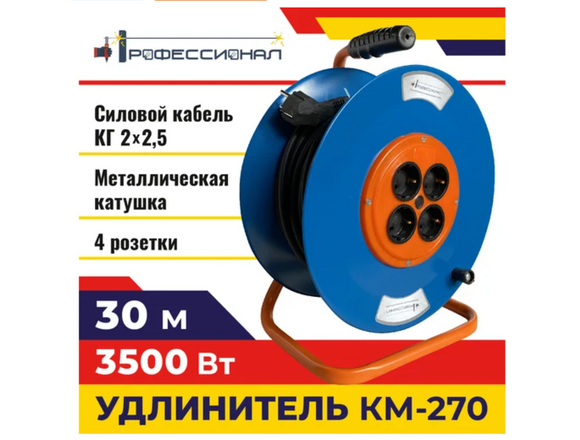 Удлинитель КМ-270 ПРОФЕССИОНАЛ КГ 2*2,5 30м (мет.катушка)