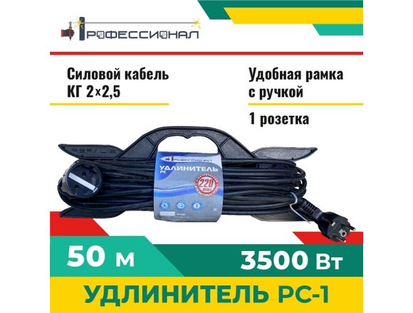 Удлинитель РС-1 ПРОФЕССИОНАЛ КГ 2*2,5 16А 50м