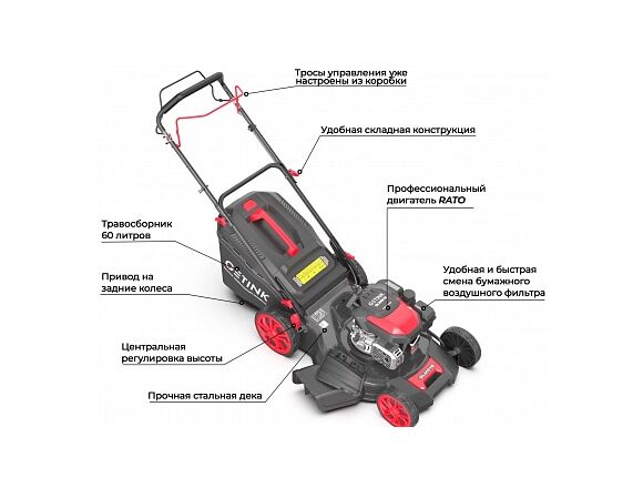 Газонокосилка бензиновая GETINK (51 см, ручной стартер, самоходная)