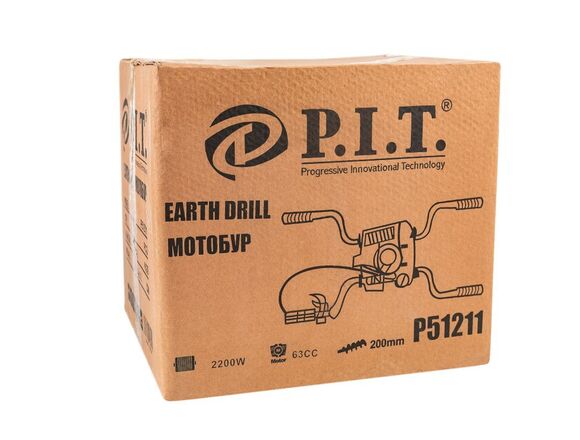 Мотобур P.I.T.(ЧЕТЫРЕХ-РУЧНЫЙ,2-х тактный,2,2кВт.об/двиг 63 см³,8000об/мин,топ бак1,2 л.7,5 кг,1/1