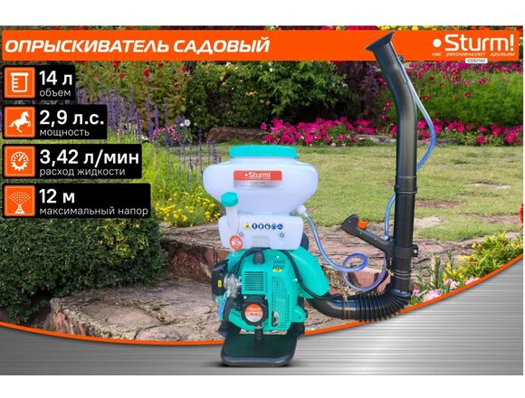 Опрыскиватель бензиновый STURM 14л (2,9л.с.) 3,42 л/мин, РАНЦЕВЫЙ, управление на рукоятке (1/1)