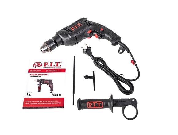 Ударная дрель P.I.T. PSB13-C6 используется для сверления отверстий в дереве, металле, пластике, кирпиче.