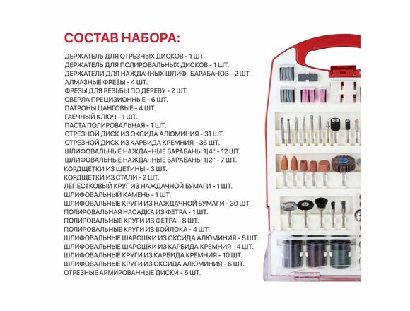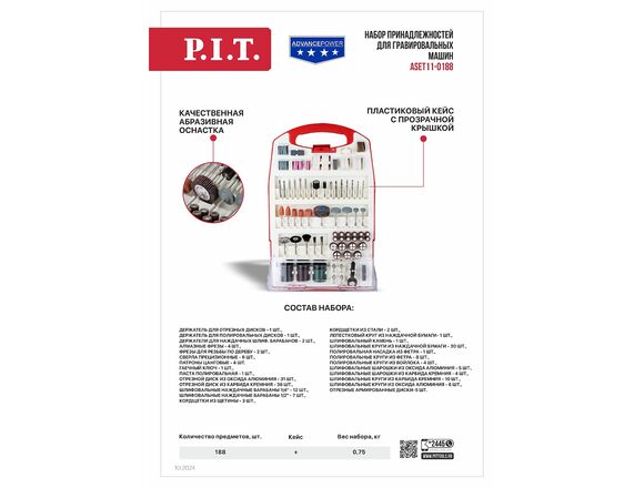 Набор насадок для гравера P.I.T. 188шт пластиковый кейс