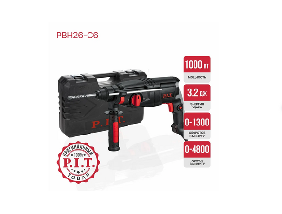 Перфоратор P.I.T. PBH26-C6 подходит для долбления бетона, бурения отверстий, а также сверления в дереве, бетоне и металле. Три режима работы, в том числе долбление - для самых твердых материалов. Высокая мощность при небольшой массе инструмента для комфортной работы