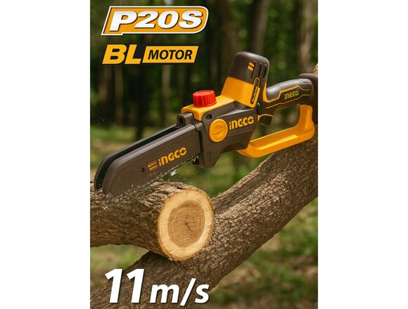 Цепная аккумуляторная мини-пила INGCO INDUSTRIAL 20В CGSLI2066 специально разработана для работы в саду при уходе за растущими деревьями и работ в кроне дерева, распила и обрезания веток деревьев, проведения работ по заготовке деревянных заготовок в соответствии с допустимой длиной резания.