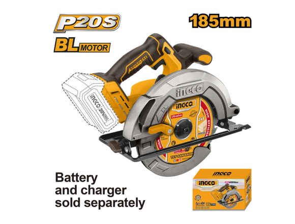 Пила циркулярная Б/Щ "20V MAX" INGCO INDUSTRIAL 185*20мм ,без АКБ и ЗУ (1/4)