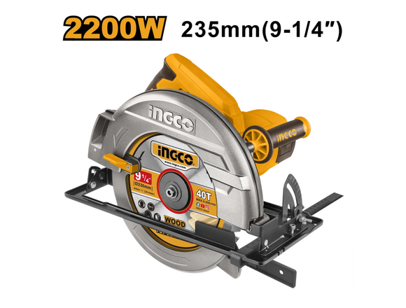 Циркулярная пила INGCO INDUSTRIAL CS2358 выполняет точные и прямые распилы досок, ламината, бруса, гипсокартона. Оснащается пильным диском диаметром 235 мм.