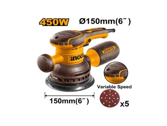 Шлифмашина эксцентриковая INGCO 450Вт 150мм 6000-12000об/мин (1/6)