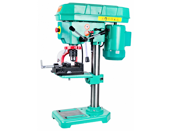 Сверлильный станок Штурм BD7037 - надежный инструмент для небольших мастерских. Предназначен для сверления заготовок из дерева, пластмассы и метала. При наличии соответствующих насадок, станок может быть применен для полировки или гравировки. Инструмент оснащен электродвигателем мощностью 370 Вт. Электропривод и шпиндель закреплены на вертикальной конструкции и могут быть отрегулированы по высоте. Особенностью станка являются ступенчатые шкивы и клиноременная передача, позволяющие задавать 5 скоростей вращения в пределах 580-2650 об/мин. Глубина сверления регулируется при помощи индикаторной линейки, что очень удобно при сверлении глухих отверстий.