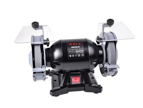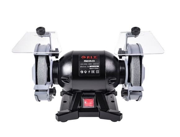 Точильный станок P.I.T. PBG125-C1 используют в небольших мастерских для заточки слесарного и режущего инструмента, удаления слоев металла, сухого шлифования заготовок. Установку оборудования производят на верстак через монтажные отверстия. Прочный корпус поглощает шум и рабочие вибрации. С обеих сторон станка установлены прозрачные экраны, защищающие от вылета искр, не закрывая обзор оператору.