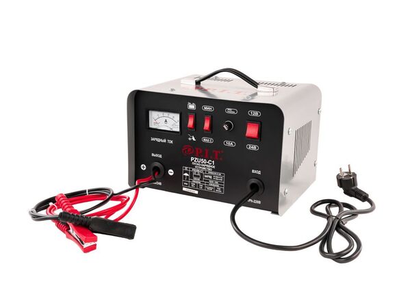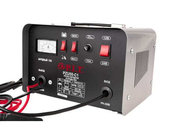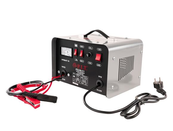 Пуско-зарядное устройство P.I.T. 12/24 В, ток.заряда 20/30 А, 950 Вт/6.4 кВт PZU50-C1 представляет собой функциональное оборудование, которое является незаменимым помощником при обслуживании автомобильных аккумуляторов. Модель отличается компактными размерами и небольшим весом, что гарантирует легкость хранения. Автоматическая система защиты от перегрева позволяет исключить вероятность преждевременного выхода из строя. Стрелочный амперметр в конструкции аппарата предназначается для визуального контроля над величиной тока заряда.