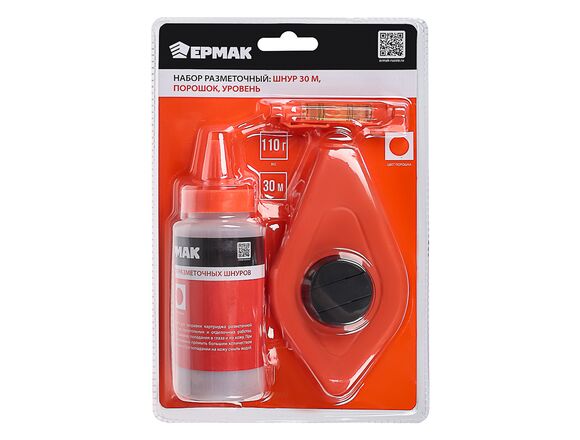Шнур отбивочный ЕРМАК 30м (3 в 1) + краска и уровень (1/60)