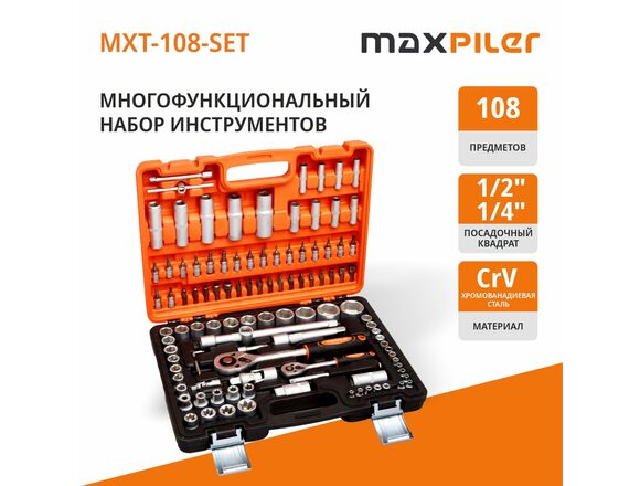 АКЦИЯ Компрессор P.I.T. 50л, двупоршневой V-образный + в подарок набор головок MaxPiler 108шт