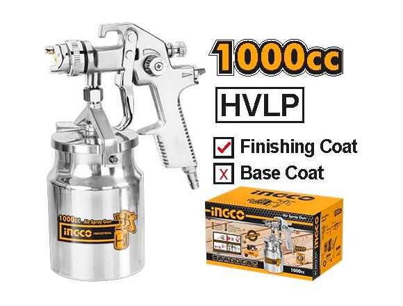 Краскопульт пневматический INGCO INDUSTRIAL HVLP н/б 1000мл,119-200л/мин, Ø1.4мм (2/10)