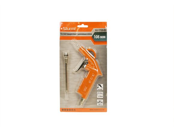 Пистолет продувочный STURM удлиненное сопло 2-6 бар, диаметр 3,8 мм, сопло l=108мм (1/40)
