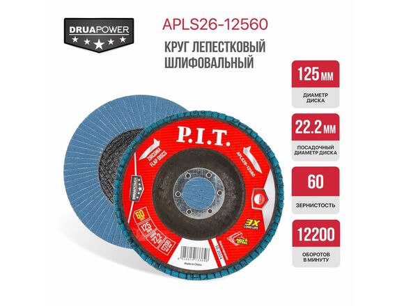 Круг лепестковый торцевой P.I.T. DRUA 125*22,2мм, ZA 60, циркониевый корунд (1/100)