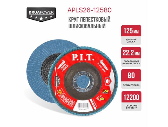 Круг лепестковый торцевой P.I.T. DRUA 125*22,2мм, ZA 80, циркониевый корунд (1/100)