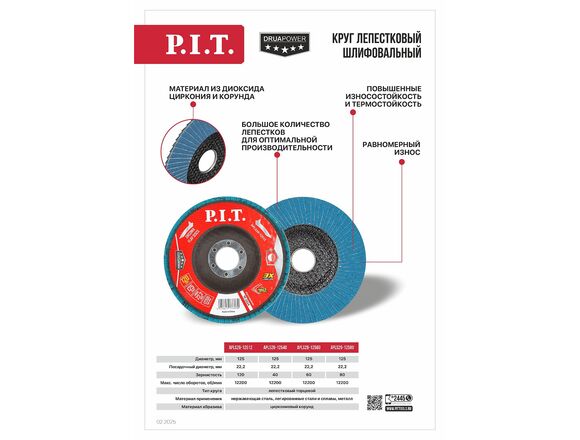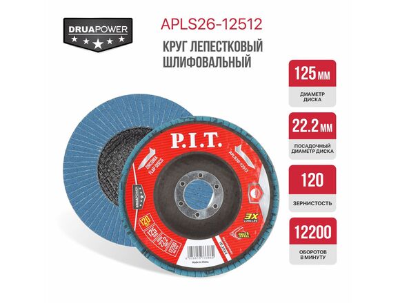 Круг лепестковый торцевой P.I.T. DRUA 125*22,2мм, ZA120, циркониевый корунд (1/100)