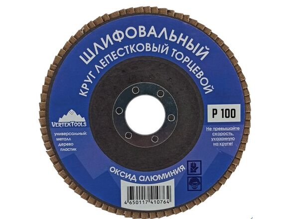 Круг лепестковый торцевой Vertextools 12600-100 необходим для обработки различных поверхностей. Диск шлифовальный помогает подготовить поверхность под покраску, удалить ржавчину и оскалины, зачистить швы и кромки. Круг шлифовальный справляется с металлом, деревом, пластмассой и другими материалами. Представленная модель состоит из прямоугольных шлифовальных отрезков, которые закреплены внахлест на подложке из стекловолокна. Такая конструкция позволяет качественно отшлифовать не только плоские, но и вогнутые поверхности. Абразивный корунд стирается равномерно по всему периметру, что позволяет использовать круг до полного изнашивания. Диск лепестковый устанавливается на стационарные станки или специальные электроинструменты. Круги для шлифовальной машины имеют высокое качество зачистки, производят минимальный шум при работе, характеризуются отсутствием вибрации.