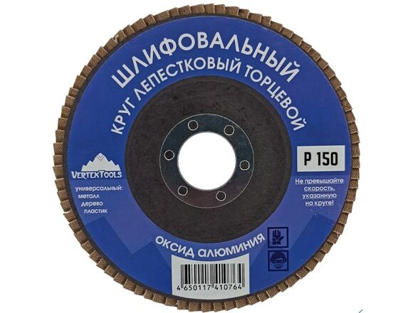 Круг лепестковый торцевой Vertextools 12600-150 необходим для обработки различных поверхностей. Диск шлифовальный помогает подготовить поверхность под покраску, удалить ржавчину и оскалины, зачистить швы и кромки. Круг шлифовальный справляется с металлом, деревом, пластмассой и другими материалами. Представленная модель состоит из прямоугольных шлифовальных отрезков, которые закреплены внахлест на подложке из стекловолокна. Такая конструкция позволяет качественно отшлифовать не только плоские, но и вогнутые поверхности. Абразивный корунд стирается равномерно по всему периметру, что позволяет использовать круг до полного изнашивания. Диск лепестковый устанавливается на стационарные станки или специальные электроинструменты. Круги для шлифовальной машины имеют высокое качество зачистки, производят минимальный шум при работе, характеризуются отсутствием вибрации.