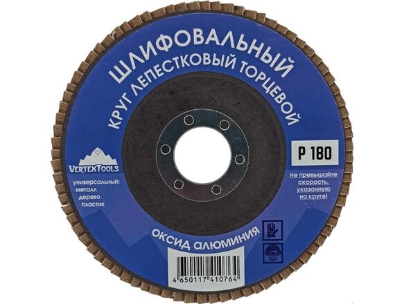 Круг лепестковый торцевой Vertextools 12600-180 необходим для обработки различных поверхностей. Диск шлифовальный помогает подготовить поверхность под покраску, удалить ржавчину и оскалины, зачистить швы и кромки. Круг шлифовальный справляется с металлом, деревом, пластмассой и другими материалами. Представленная модель состоит из прямоугольных шлифовальных отрезков, которые закреплены внахлест на подложке из стекловолокна. Такая конструкция позволяет качественно отшлифовать не только плоские, но и вогнутые поверхности. Абразивный корунд стирается равномерно по всему периметру, что позволяет использовать круг до полного изнашивания. Диск лепестковый устанавливается на стационарные станки или специальные электроинструменты. Круги для шлифовальной машины имеют высокое качество зачистки, производят минимальный шум при работе, характеризуются отсутствием вибрации.