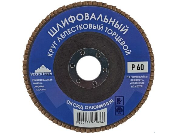 Круг лепестковый торцевой Vertextools 12600-060 необходим для обработки различных поверхностей. Диск шлифовальный помогает подготовить поверхность под покраску, удалить ржавчину и оскалины, зачистить швы и кромки. Круг шлифовальный справляется с металлом, деревом, пластмассой и другими материалами. Представленная модель состоит из прямоугольных шлифовальных отрезков, которые закреплены внахлест на подложке из стекловолокна. Абразивный корунд стирается равномерно по всему периметру, что позволяет использовать круг до полного изнашивания. Диск лепестковый устанавливается на стационарные станки или специальные электроинструменты. Круги для шлифовальной машины имеют высокое качество зачистки, производят минимальный шум при работе, характеризуются отсутствием вибрации.
