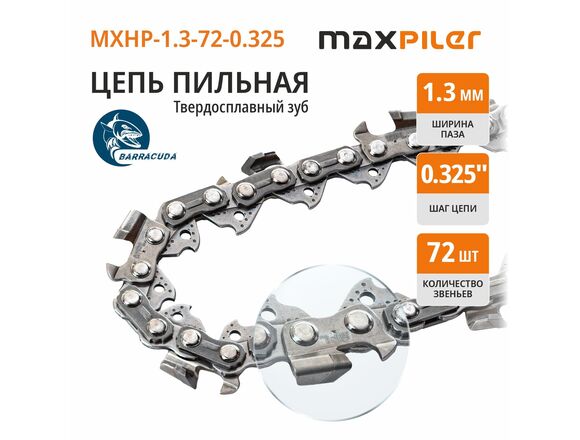 Цепь пильная с ПОБЕДИТОВОЙ напайкой MAXPILER PROF BARRACUDA 72зв 0,325 1,3мм МЕТАЛЛ БОКС