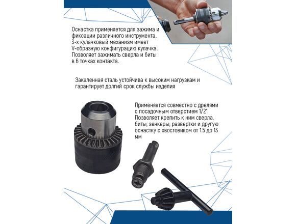 Патрон для дрели ключевой VERTEX 1,5-13мм + переходник (1/5/72)