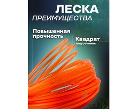 Леска для триммера MAXPILER 2.4мм*15м, КВАДРАТ (БЕЛО-ОРАНЖЕВАЯ) картон