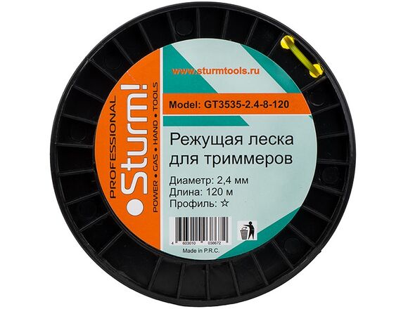 Леска для триммера в БУХТЕ ПРОФИ STURM 2,4мм*120м ЗВЕЗДА, желтый (1/20)