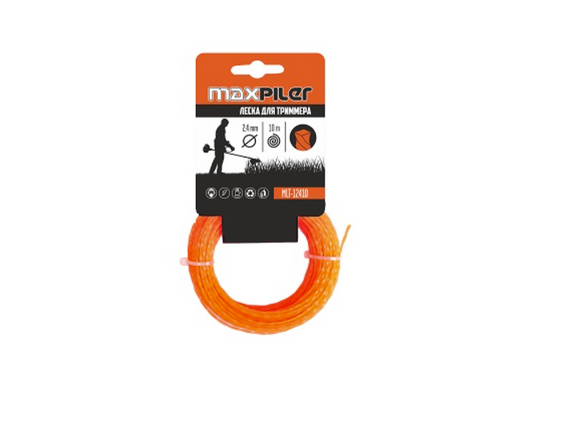 Леска для триммера MAXPILER 2.4мм*10м, КВАДРАТ КРУЧЁНЫЙ картон