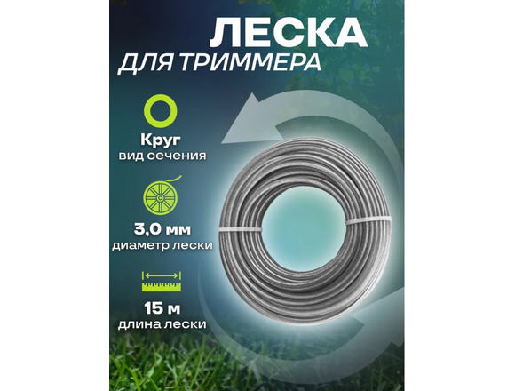 Леска для триммера MAXPILER 3.0мм*15м, ТРОС картон