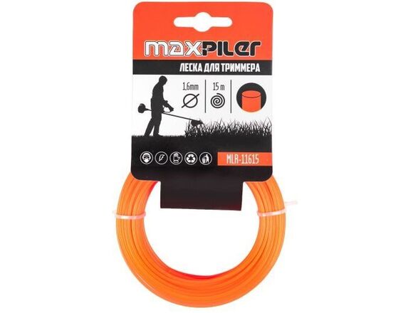 Леска для триммера MAXPILER 1.6мм*15м, КРУГ картон